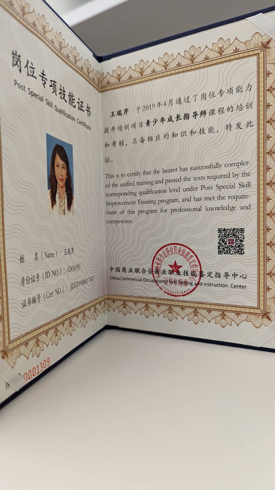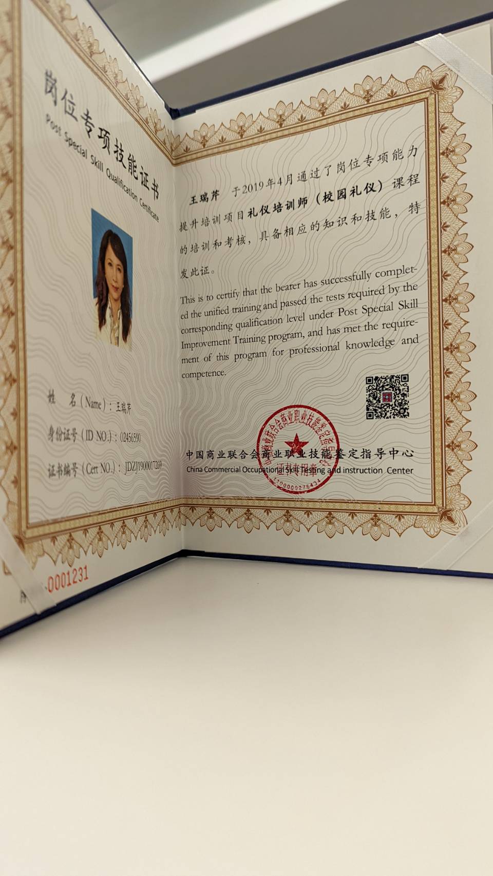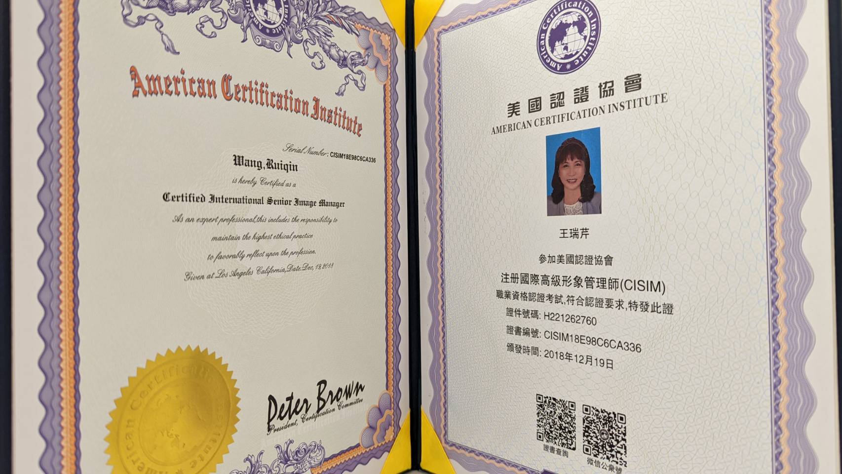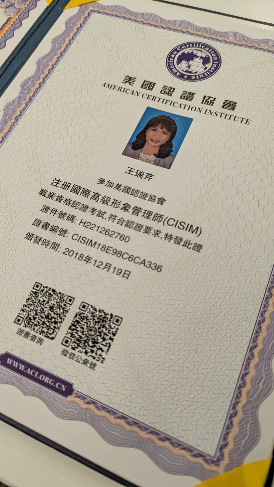 三度自費前往大陸上海、深圳學習,取得「形象管理師」(國際版、中文版)、「儀態、禮儀培訓師」、「青少年成指職導師」等證照。
